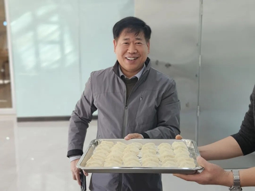 上午,商都控股公司在員工餐廳組織開展了溫馨滿滿的員工包餃子活動(dòng)。中午,當(dāng)?shù)谝惠嗭溩又笫旌?,由公司黨員和志愿者送給在公司附近忙碌的環(huán)衛(wèi)工人、保安保潔人員等,讓他們也共享冬至熱騰騰的餃子。