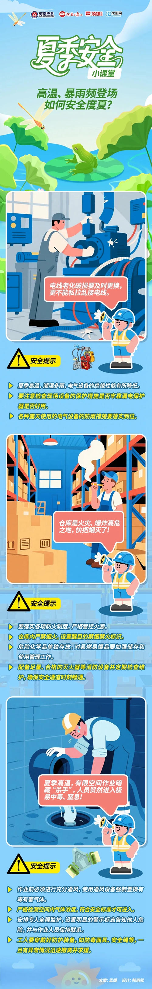 夏季天氣炎熱,同時(shí)暴雨、雷電等天氣逐漸增多,生產(chǎn)現(xiàn)場(chǎng)高溫、潮濕,容易導(dǎo)致各類事故發(fā)生。這樣的天氣條件下暗含哪些安全生產(chǎn)隱患?炎炎夏日,生產(chǎn)過程中需要重點(diǎn)防范些什么?一起來(lái)學(xué)習(xí)——