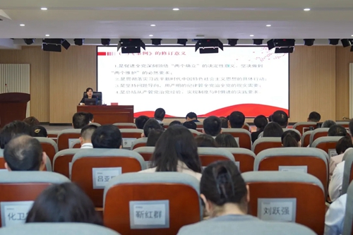 市紀委監(jiān)委駐城發(fā)集團紀檢監(jiān)察組副組長姬小靜,以《做遵規(guī)守紀的明白人》為題,分別從《條例》的歷史沿革、修訂意義、新變化和特點等方面,逐章逐條深度解讀新修訂的《中國共產(chǎn)黨紀律處分條例》。深刻領(lǐng)悟全面從嚴治黨的實踐要求,切實學(xué)出政治忠誠、學(xué)出清正廉潔、學(xué)出擔(dān)當(dāng)作為。