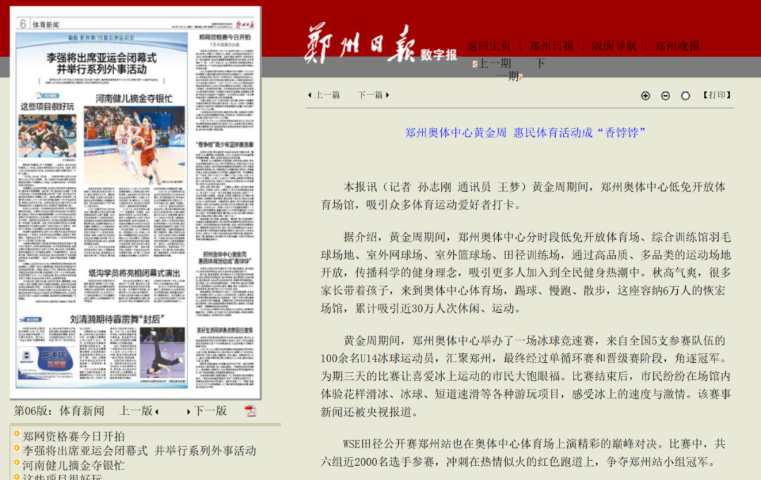 雙節(jié)黃金周期間,為豐富廣大市民假期出游選擇,鄭州奧體中心根據(jù)群眾喜聞樂見的休閑娛樂活動(dòng),充分發(fā)揮場館優(yōu)勢,開展場館低免開放、國際車展、運(yùn)動(dòng)賽事等一系列豐富多彩的惠民文體活動(dòng),在小長假期間,累計(jì)吸引近30萬人次來到鄭州奧體中心打卡精彩活動(dòng),受到央視新聞?lì)l道、河南廣播電視臺(tái)、鄭州廣播電視臺(tái)、鄭州日報(bào)等官方媒體爭相報(bào)道。