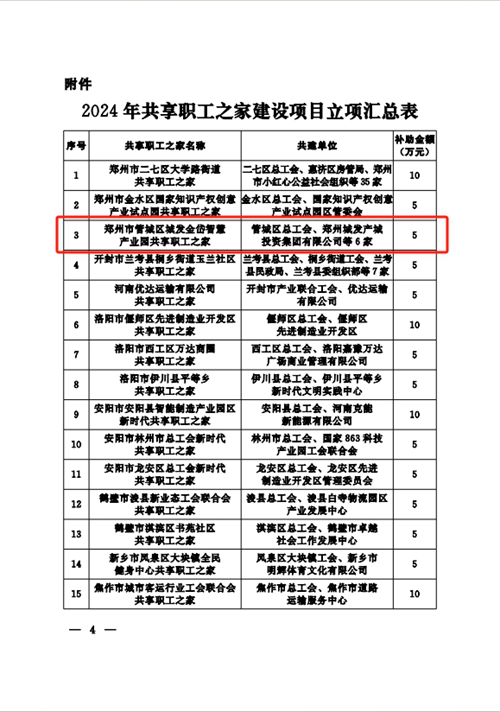 近日,河南省總工會發(fā)布《關(guān)于2024年共享職工之家建設(shè)項目立項的通知》,決定對城發(fā)金岱智慧產(chǎn)業(yè)園共享職工之家等32個共享職工之家建設(shè)項目進(jìn)行立項,并對城發(fā)金岱智慧產(chǎn)業(yè)園共享職工之家給予資金補助,鄭州市僅有三家職工之家獲得立項,這是城發(fā)金岱智慧產(chǎn)業(yè)園共享職工之家建設(shè)運營后取得的第一份殊榮。