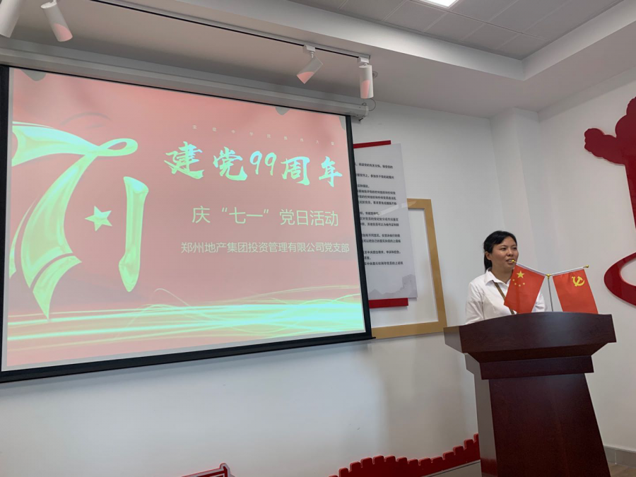 為熱烈慶祝建黨99周年,激發(fā)公司廣大黨員的責(zé)任感、榮譽(yù)感和使命感,鄭州地產(chǎn)集團(tuán)投資管理有限公司黨支部開展慶祝建黨99周年·“七一”黨日活動。在黨的生日這天,組織全體黨員重溫初心承諾、學(xué)習(xí)理解黨的文化內(nèi)涵、講述家風(fēng)傳承故事。